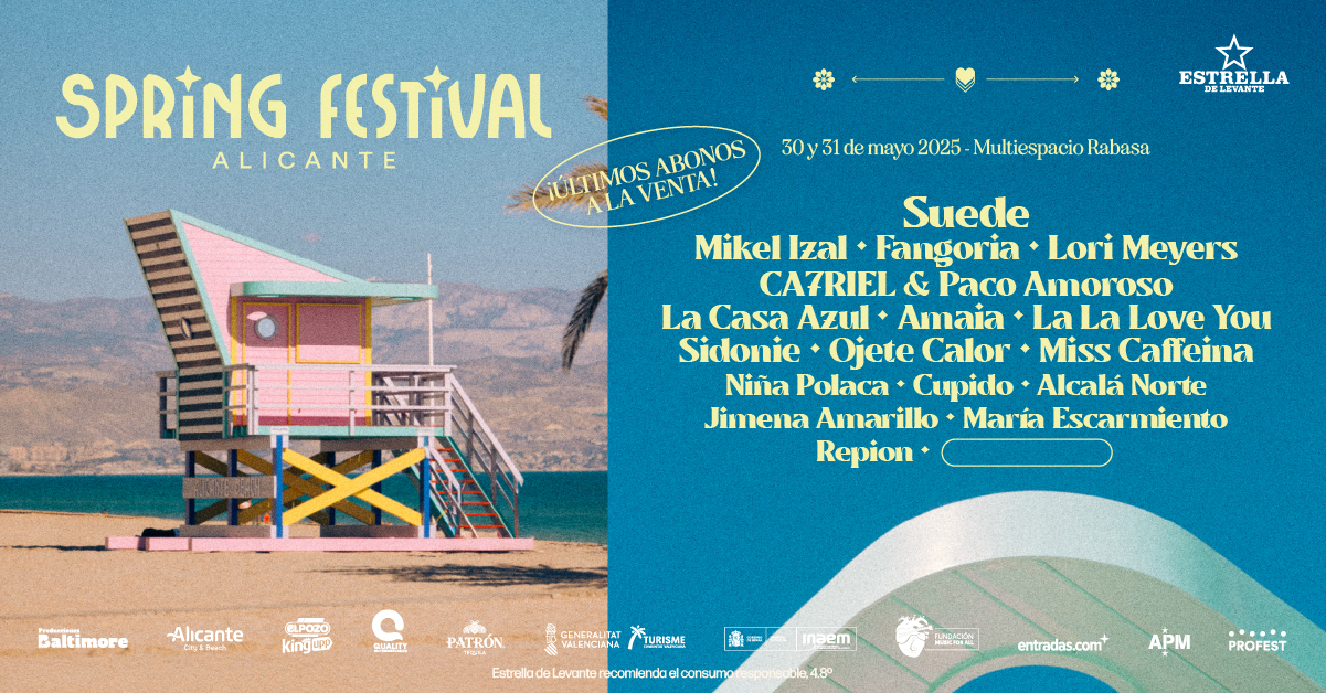 Vente a ver a Suede, Mikel Izal, Fangoria, CA7RIEL& Paco Amoroso, Lori Meyers, La Casa Azul, Amaia, La la Love You, Sidonie, Ojete Calor, Miss Caffeina, Niña Polaca o Cupido entre otros y además disfruta del clima, la playa y la gastronomía de la ciudad de Alicante.